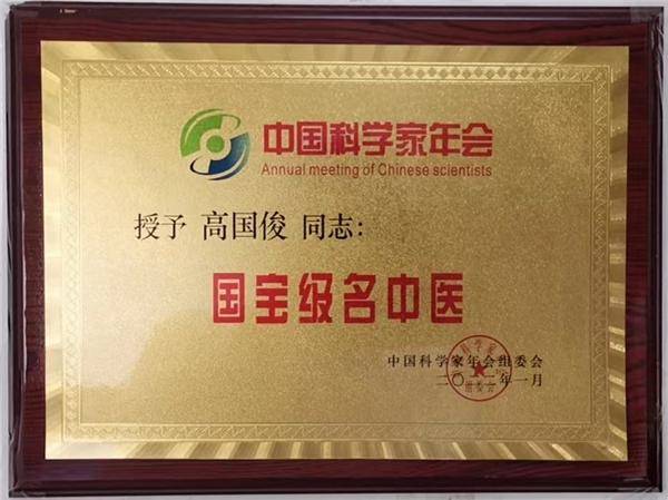 于2021年度中国科学家年会,鉴于高国俊教授在医学领域的卓越贡献,授予高国俊教授“国宝级名中医。